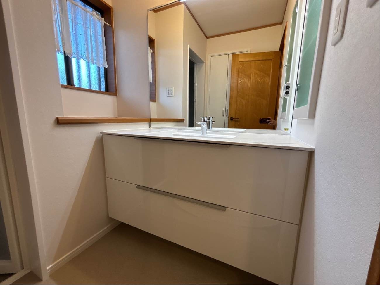 2階の洗面台はタカラスタンダードのファミーユに交換いたしました。 汚れ・湿気・熱に強い「ホーロー」素材を全面に使用しているのが特徴です。 1階の洗面台はTOTOエスクアに交換いたしました。 洗練されたデザインと高い機能性を両立させたTOTOのシステムドレッサーです。